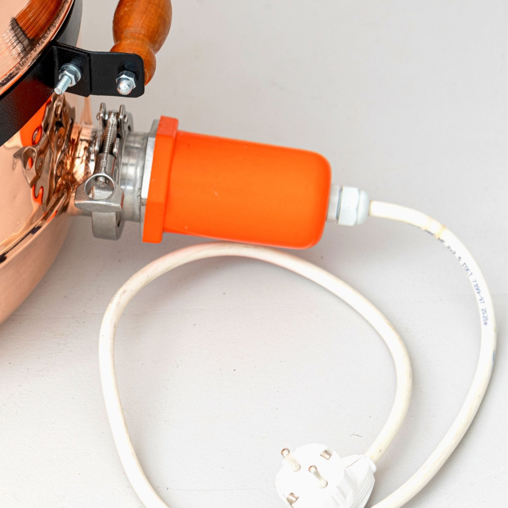 Electric heating element - Finally, it's up to you where to make distillation. You don't need to use stove for extraction process. All you need it's an electric socket and water supply.